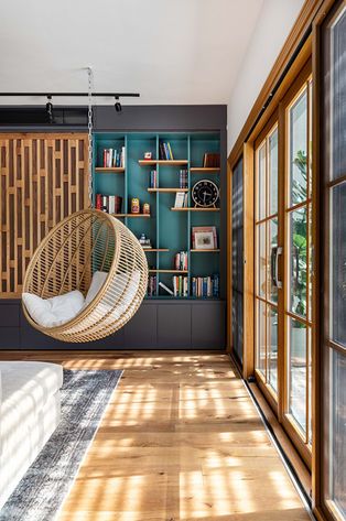 הפתחים הגדולים, האור הטיבעי שחודר ומטיל צללים על רצפת העץ, החלונות שנבחרו בקפידה להלביש את הפתחים הללו וצימחי הבמבוק שמציצים דרכם, החומריות בתוך הבית, הטקסטורות, פרטי הנגרות, המחיצות שנעות ומגלות מאחוריהן חללים נווספים ונסתרים, כל אלה מהווים מחוות קטנות לתרבות עשירה ומסורתית, מכניסים אוירת זן ומשרים רוגע על כל באי הבית.
