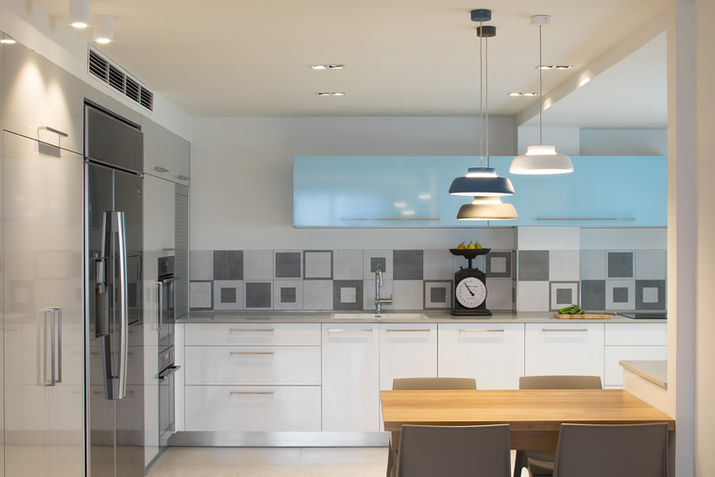 האתגר הראשון נפתר על ידי הריסת כל הקירות והמחיצות שניצבו בחללים המרכזיים והפיכת מרחב האירוח לחלל אחד גדול וזורם עם שני חלונות ויטרינה מרשימים, שמכניסים המון אור ואוויר. גם המטבח הקטן, החשוך והצפוף, הפך למואר וגדול עם המון שטחי עבודה ומקומות אחסון על ידי הסרת קירות שחצצו בין המטבח לסלון ולאזור השירות.